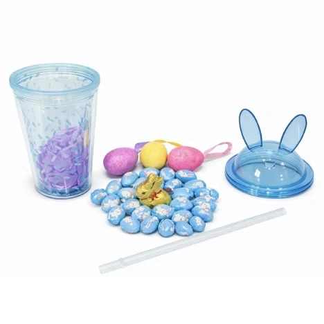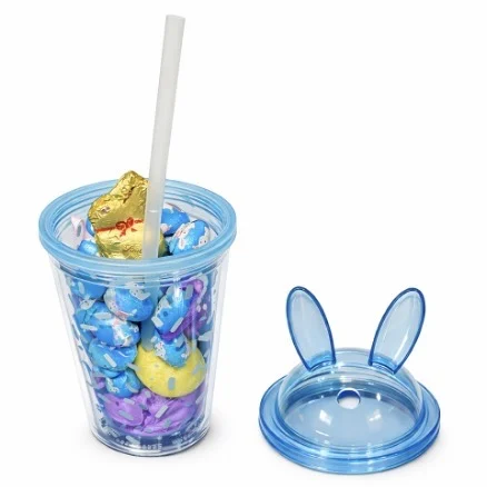 Make Easter extra special with this adorable bunny-ear treat cup, packed with delicious goodies and festive decorations. This clear reusable cup comes complete with a straw and cute bunny-ear lid, making it perfect for little ones to enjoy long after the treats are gone.